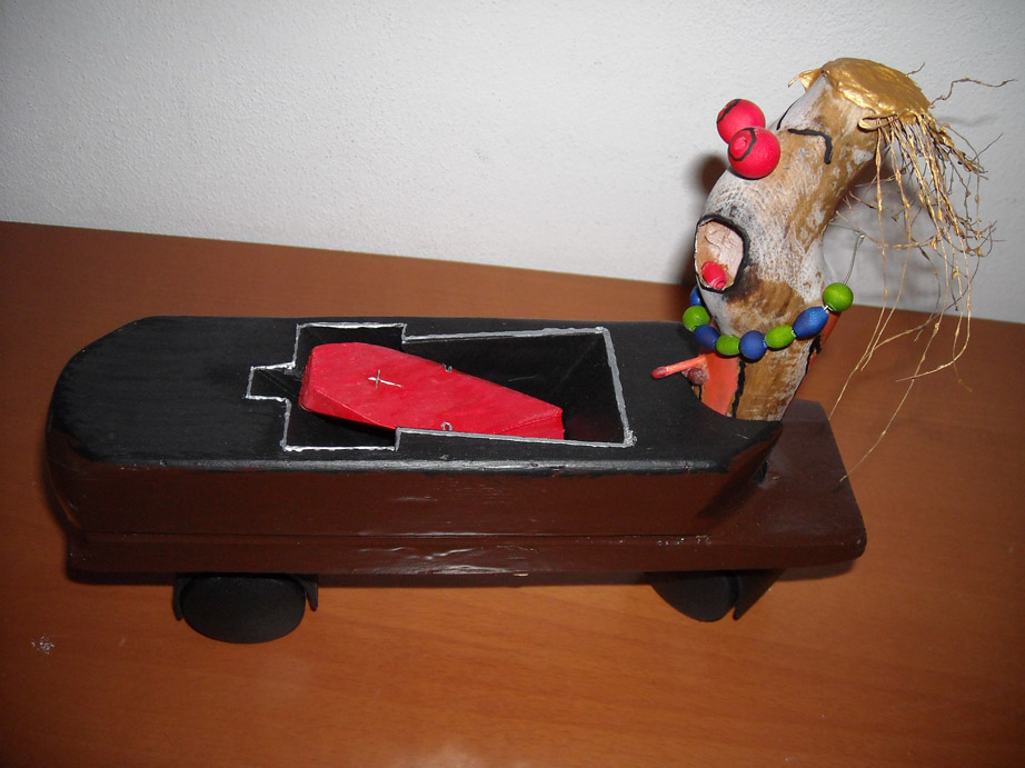 The work on handicrafts is part of the work of the actor, in order to create, use imagination and fantasy, to know more about himself , to understand TRUE ACTIONS and in which moment of life he is. Through this kind of work the actor should start to really understand what does it mean physical actions and how to be here and now as well as when he is doing performance or training. I understand that whatever the actor needs for the performance he should do it himself and not buy it. It is possible to work with leather, wood or others elements, the most important is to be able to create. Performance and handicrafts are connected since the process that an actor lives when doing a handicraft work is very similar to the process that he lives when he prepares performance, in the beginning I always start from an idea or inspiration and it looks that it will not happen, and then with the time I see that things starts to take shape till the moment that it is ready. Min Tanaka, the butoh dancer that develops his BODY WEATHER worksession in Japan use the work in the field and the work in ancient handicrafts as part of the worksession, Odin Teatret actors used to do their own clothes for performances.